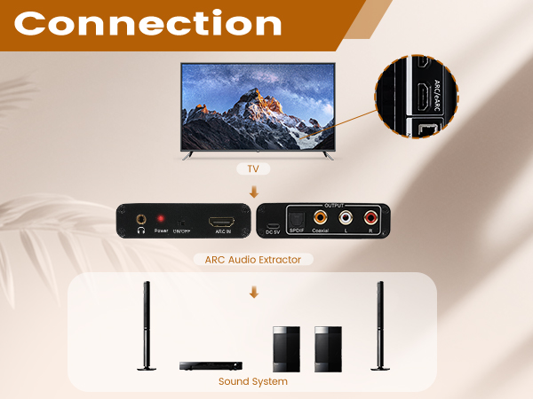 Connect the HDMI ARC audio extractor to your TV's HDMI ARC port to transmit audio to your sound system.